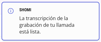 Shomi traduce el resumen de la llamada. Elige el idioma al que quieres traducir el resumen de la llamada.