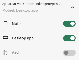 Als je een bureautelefoon hebt geïnstalleerd en gekoppeld met Contact, kun je deze optie selecteren om inkomende gesprekken op je bureautelefoon te laten signaleren. |