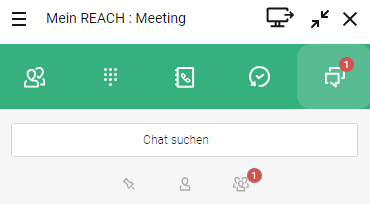 Um den Chat zu öffnen, klicken Sie auf. Im Chat können Sie Nachrichten versenden, Anrufe starten und Meeting Room Einladungen versenden. In Contact Desktop geteilte Internetseiten werden als Link dargestellt, geteilte Standorte werden mit Google Maps Erkennung angezeigt.