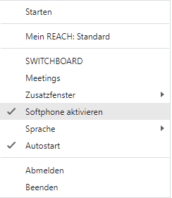 4 Deaktivieren Sie das Softphone auf der remote Contact Desktop Instanz. Sie können dies über das Kontextmenü in der Taskleiste tun und die Markierung Softphone aktivieren entfernen.