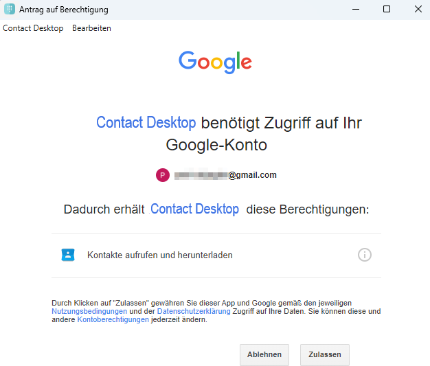 Die Schnittstelle ist eingerichtet. Ihre Google-Kontakte werden in Contact Desktop angezeigt.