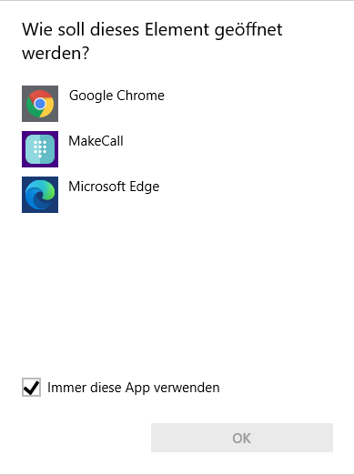 1 Wählen Sie MakeCall und aktivieren Sie den Haken bei Immer diese App verwenden.