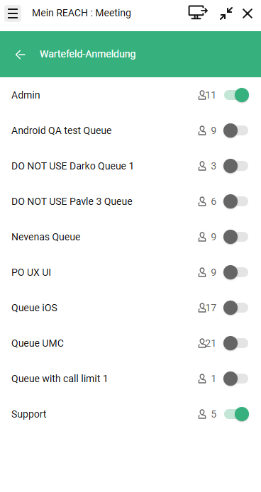 Um eine bessere Orientierung zu bieten, wann sich Nutzer an einem Wartefeld an- oder abmelden sollten, wird im Bereich Wartefeld-Anmeldung nun die Anzahl der aktuell angemeldeten Agenten angezeigt.