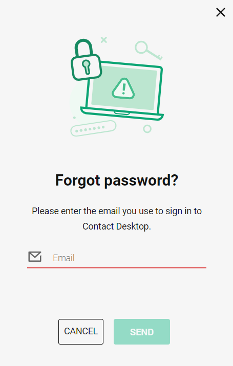 1 Click on Forgot password? in the Contact Desktop login dialogue.