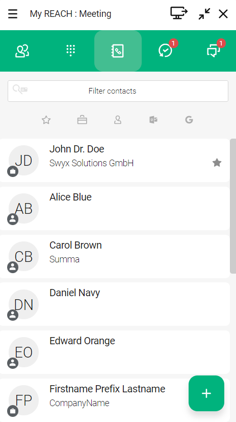 If you have set contacts in the phone book as favorites, they are displayed at the top. The remaining contacts are listed below in alphabetical order.
