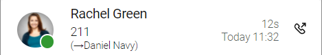 Example: Rachel Green called you. You have active forward to Daniel Navy. The call is forwarded. Daniel Navy answered the call :