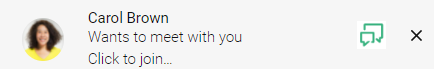 You will find all Meeting Room invitations in the chat. This way you can attend a meeting later. An invitation expires after 15 minutes.