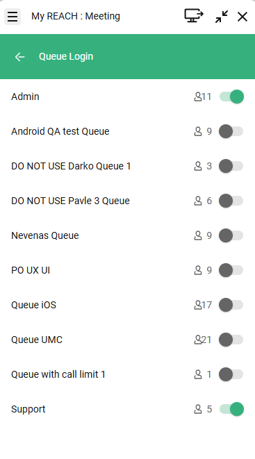 To provide clearer guidance on when to log in to or log out of a queue, the number of agents currently logged in is now displayed in the Queue login section. This helps users make better-informed decisions and prevents queues from being left unattended. For more information, see