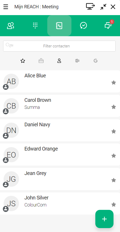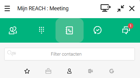 Om het Telefoonboek te openen, klik op . Het telefoonboek bevat je externe en persoonlijke contacten. Je kunt vermeldingen toevoegen, bewerken en verwijderen.