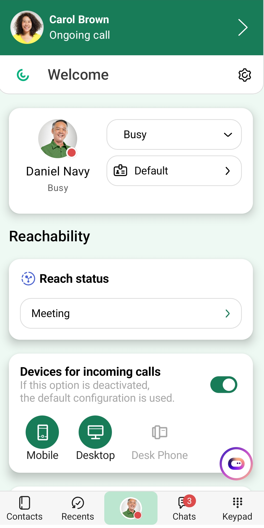 You are on a call via Contact Desktop, but need to continue it on the go? No problem — you can easily transfer the call to your smartphone.