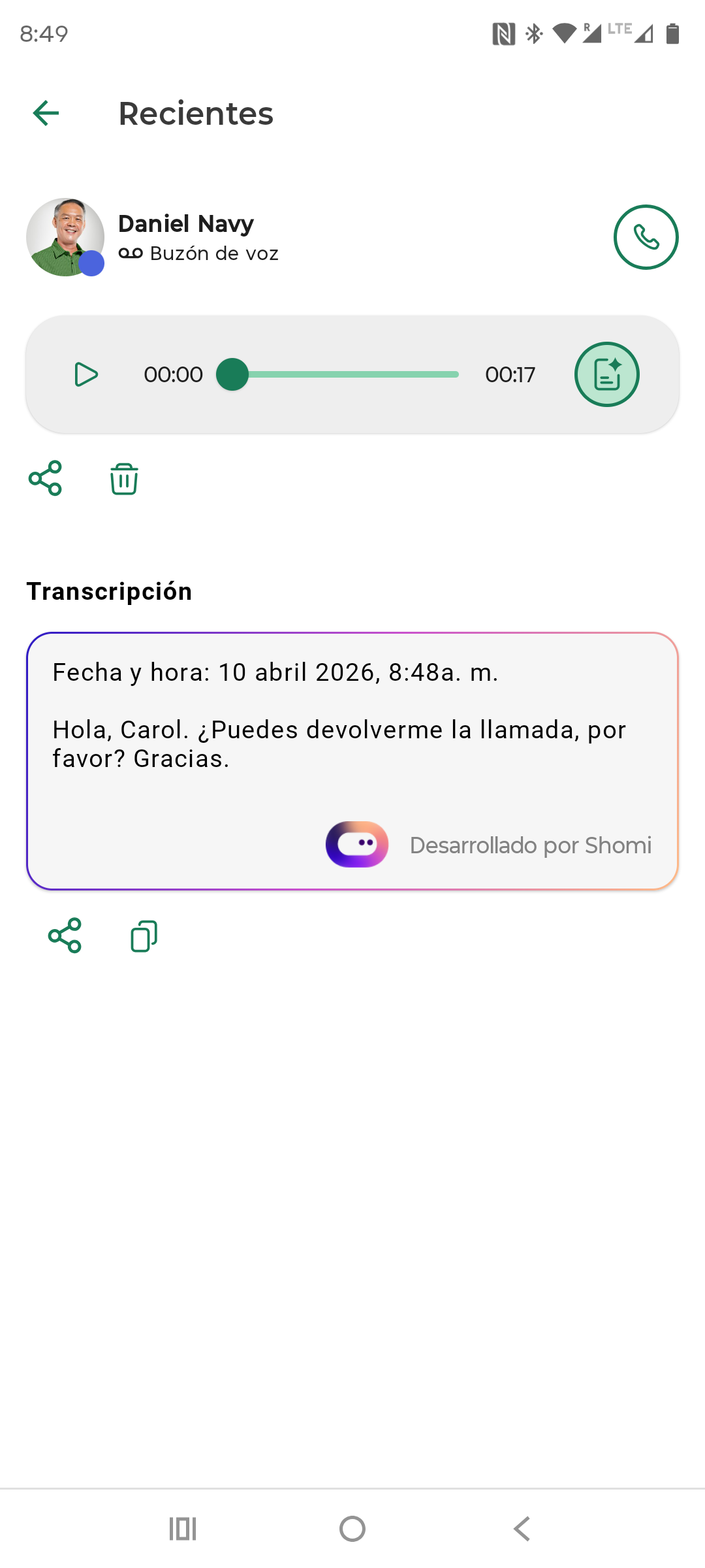 Además de reproducir el mensaje de voz, tienes las siguientes opciones: