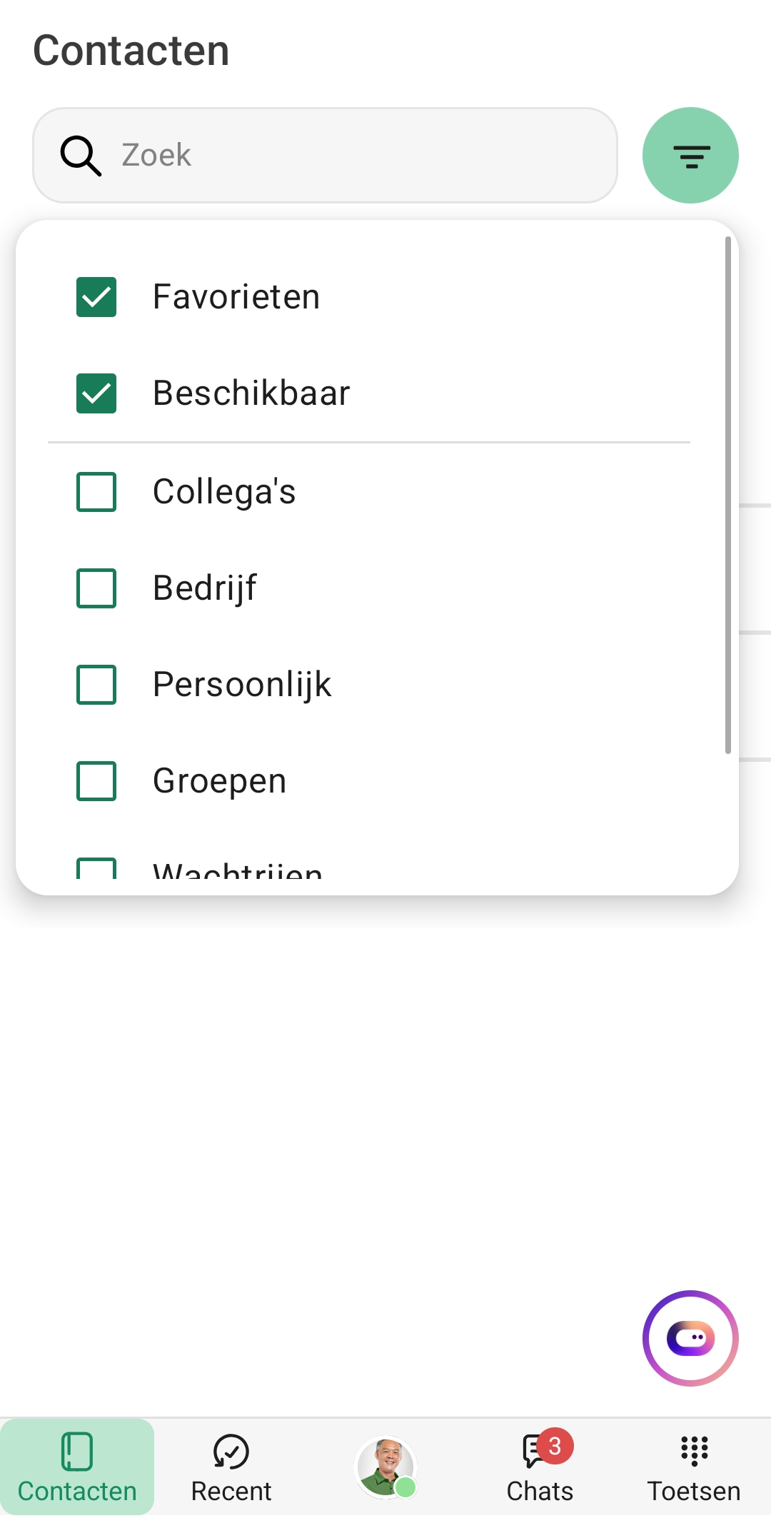 Beschikbaar | Contacten die online zijn |