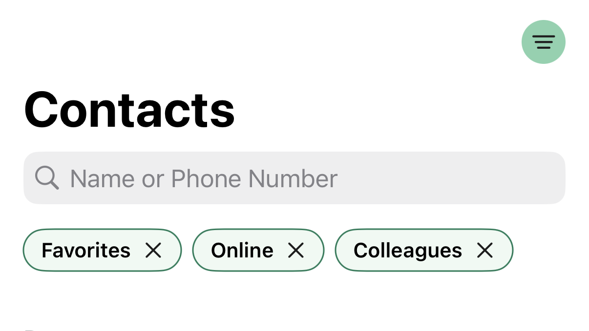 A bar with filters and additional contact groups appears. You can combine the filters with the contact groups below: