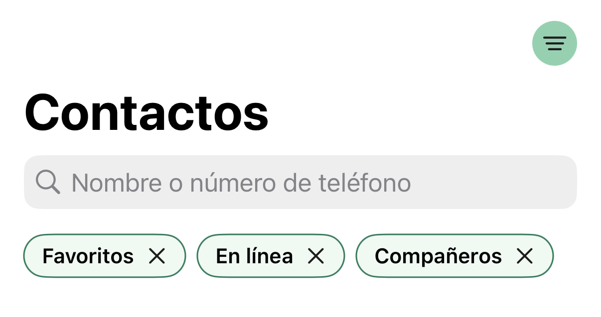 Encima de la lista de contactos, puedes ver qué filtros están seleccionados.