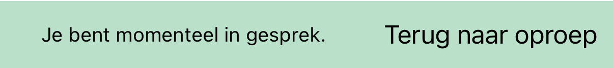 Tijdens een actief gesprek kunt je door de secties van Contact Mobile bladeren of andere toepassingen gebruiken. Actieve gesprekken worden op twee verschillende manieren aangegeven: een groene balk in de statusbalk en een groene toest in elk sectie van Contact Mobile. Dit kan worden gebruikt om terug te keren naar de app of naar het gesprek.