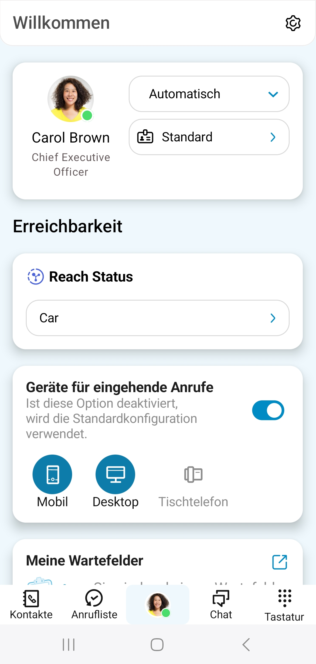 Erreichbarkeit auf einen Blick, welches Endgerät Sie für eingehende Anrufe konfiguriert haben. Unter