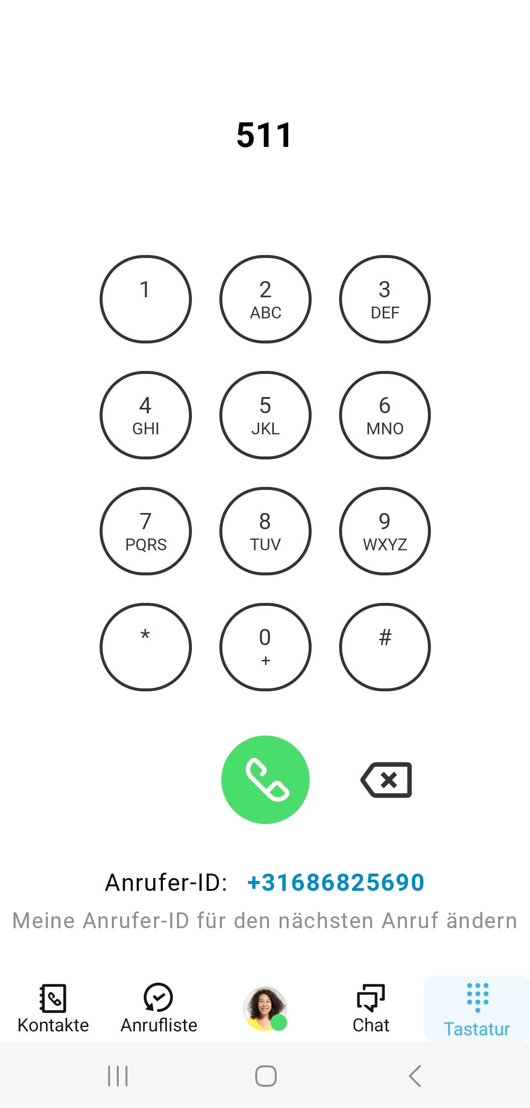 2 Geben Sie gewünschte Rufnummer (hier: 511) über die Ziffern der Tastatur ein.