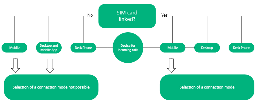 For incoming calls, an attempt is made to deliver the call via the mobile network for approx. 7 seconds. If there is no mobile connection, the call is delivered via the Contact Mobile app.