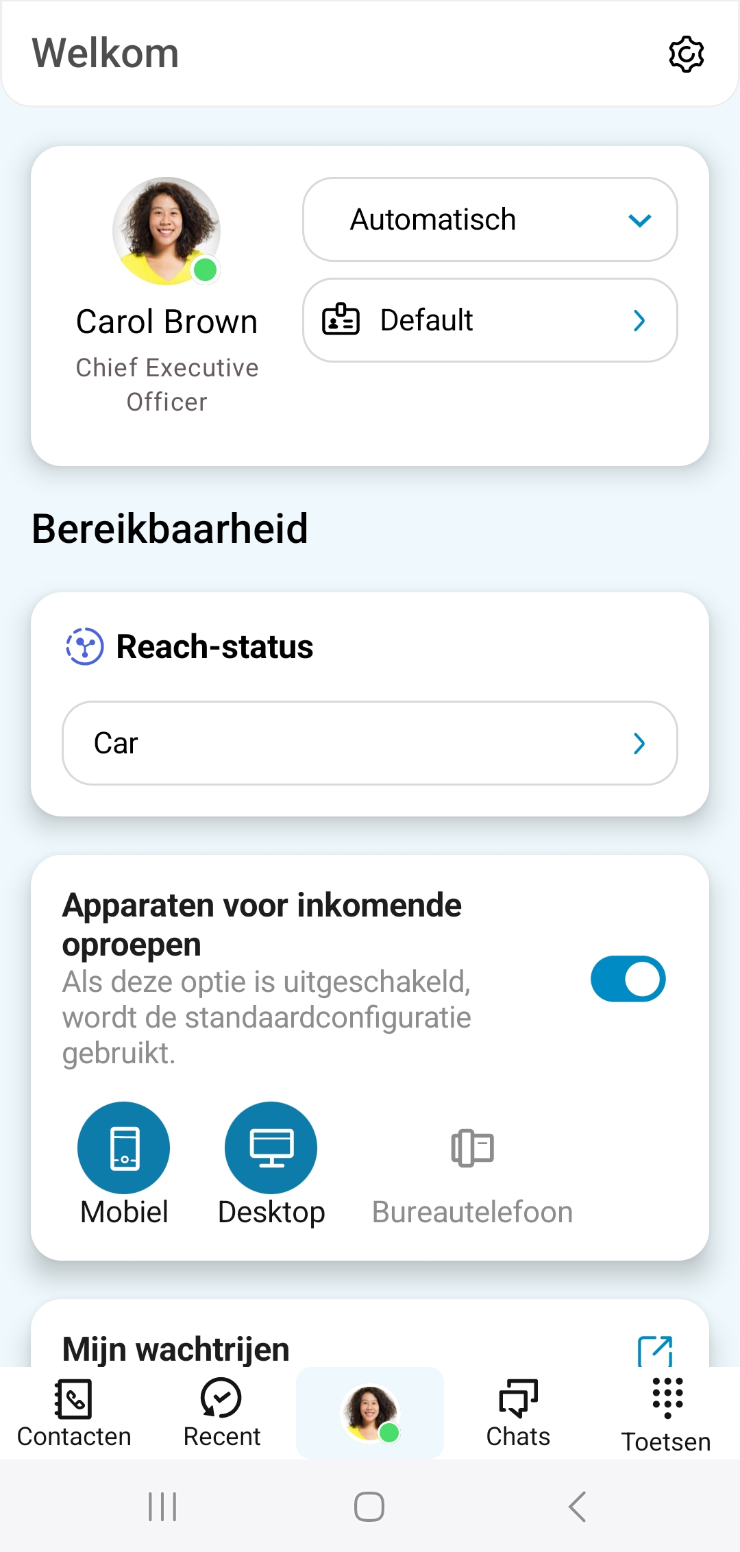 Mijn wachtrijen bij welke wachtvelden je geregistreerd staat. Meer persoonlijke informatie zoals jouw toestelnummer of e-mailadres vind je onder