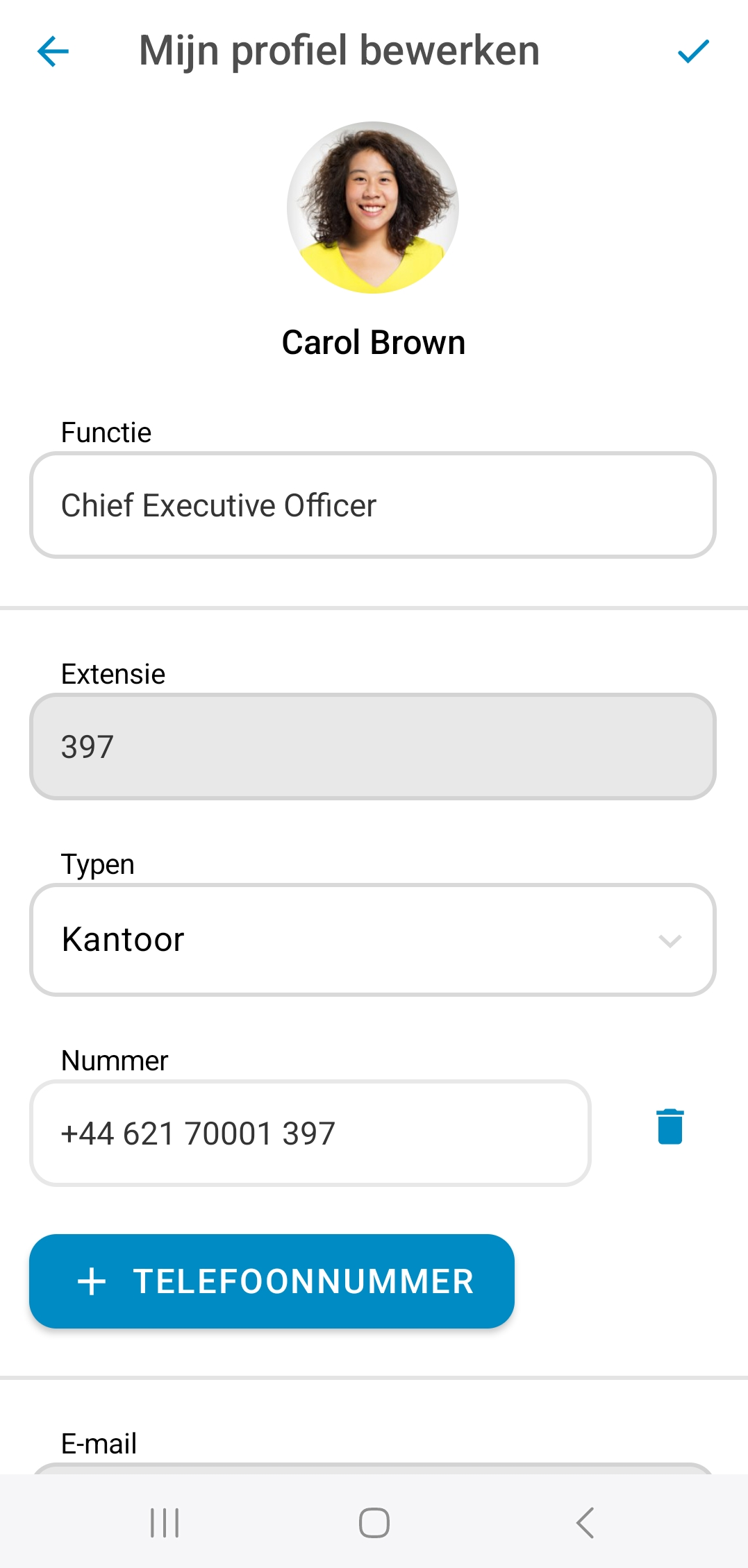 In het gedeelte Mijn profiel kun je jouw extensie, je verschillende telefoonnummers en je e-mailadres zien en