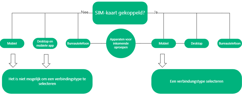 Bij inkomende oproepen wordt gedurende ongeveer 7 seconden geprobeerd het gesprek via het mobiele netwerk te voeren. Als er geen mobiele verbinding is, wordt het gesprek afgeleverd via de Contact Mobile app.