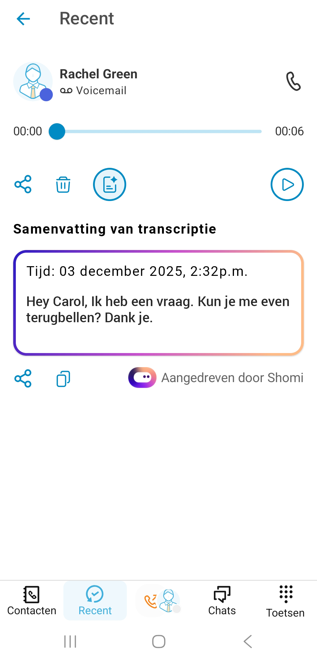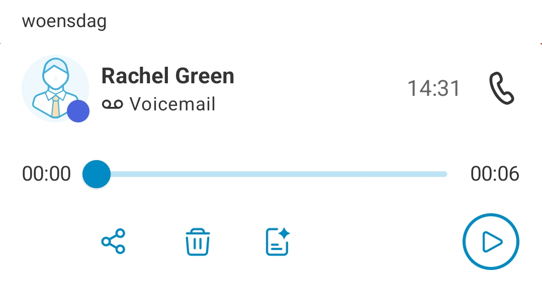 Behalve het afspelen van de voicemail, heb je de volgende mogelijkheden: