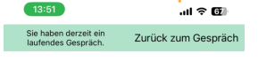 | Beim iPhone X und neueren Modellen wird die grüne Leiste für einen aktiven Anruf in der oberen linken Ecke des Bildschirms angezeigt. Bei älteren iPhones erstreckt sich die Anzeige über die gesamte Statusleiste. |