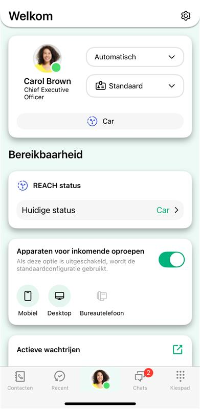 Bereikbaarheid zien welk apparaat je hebt ingesteld voor inkomende oproepen. Onder