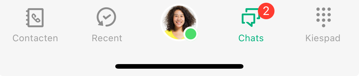 Wanneer je berichten ontvangen hebt, wordt het aantal berichten getoond in de balk naast Chats.